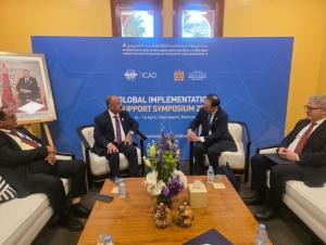 التقى وزير النقل الدكتور محسن العمري اليوم برئيس مجلس الطيران المدني الدولي (الإيكاو) توشيوكي أونوما والأمين العام للمنظمة خوان كارلوس سالازار لمناقشة سبل تعزيز التعاون المشترك في مجالات سلامة الطيران المدني ورفع كفاءة وأمن الملاحة الجوية بما يتواءم مع المعايير الدولية المعتمدة حيث استعرض الوزير على هامش مشاركته في الندوة العالمية لدعم التنفيذ المنعقدة في مراكش التحديات الكبيرة التي واجهت قطاع الطيران اليمني نتيجة الظروف الاستثنائية مؤكداً في الوقت ذاته على عمق العلاقات الاستراتيجية مع المنظمة وأهمية تكثيف الدعم التقني لتطوير كفاءة الملاحة الجوية.